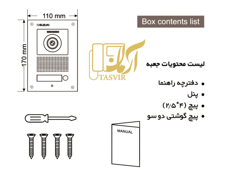 پنل یک واحدی سوزوکی با قابلیت تنظیم زاویه دید دوربین در چهار جهت کمک میکند به دید بهتر و همچنین دارای ولوم تنظیم صدای میکروفن و بلندگو میباشد.