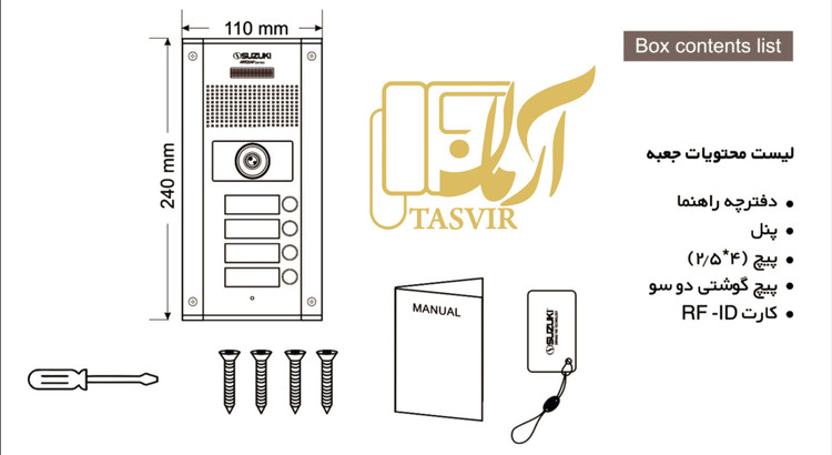 پنل چهار واحدی سوزوکی سری H با قابلیت تنظیم زاویه دید دوربین در چهار جهت کمک میکند به دید بهتر و همچنین دارای ولوم تنظیم صدای میکروفن و بلندگو میباشد.